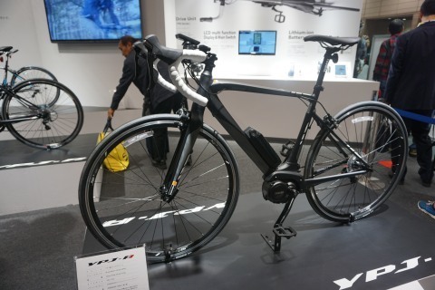 Yamahaの電動ロードバイク(YPJ-R)が展示されていたので、紹介します。15kgだそうです。アシストが動作する距離は、High:14km, STD:22km, Eco:48kmだそうです。アルミフレームに105を搭載しています。